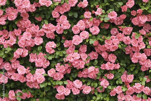Pink roses in full bloom create a vibrant and romantic floral backdrop