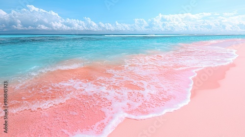 Pink Sand Beach with Turquoise Ocean and Blue Sky