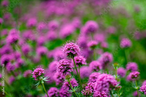 Pink small flowers of Phuopsis stylosa or Caucasian crosswort or creeping crosswort or phuopsis sweet woodruff