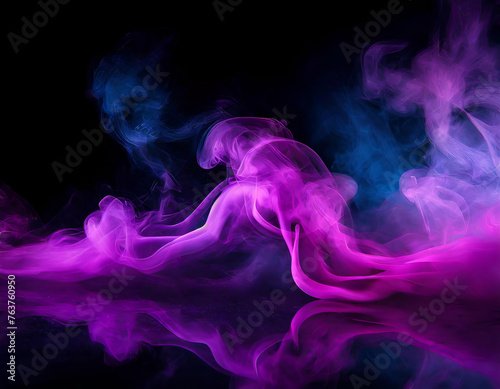 pink smoke and blue mist abstraction on reflecting ground and black background