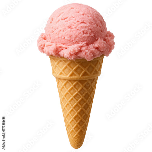 Pink Strawberry Ice Cream Scoop in Waffle Cone