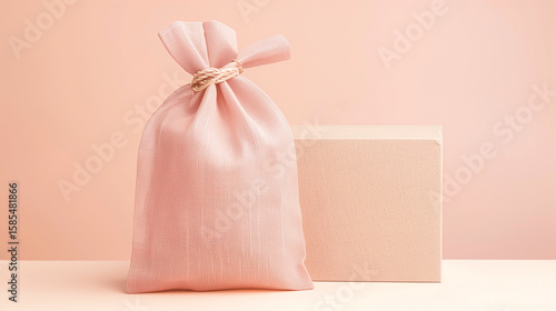 Pink Textured Reusable Bag Folded Beside Beige Packaging Box