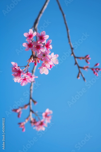 Pink Wild Himalayan Cherry blossom with clear blue sky