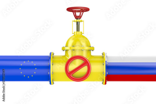pipeline between Russia and EC on white background. Isolated 3D illustration