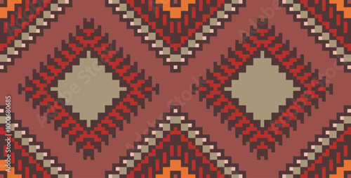 Pixel Art Abstract Modern Abstract Geometric Patternfolk Embroidery, Aztec Geometric Ornament Print. Design for Carpet, Wallpaper, Clothing, Wrapping, Fabric