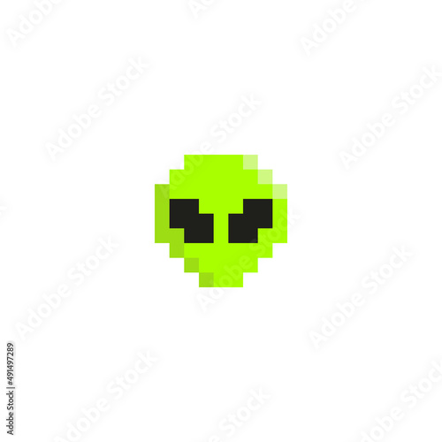 Pixel art green and gray cartoon alien character. 8 bit pixel alien. vector illustration. UFO. Creature. Face. Cartoon.