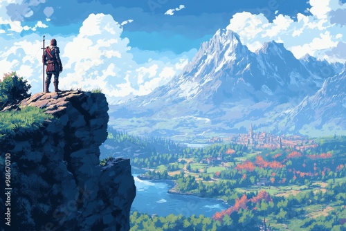 Pixel Knight Adventuring: Retro RPG Landscape with 8-Bit Charm