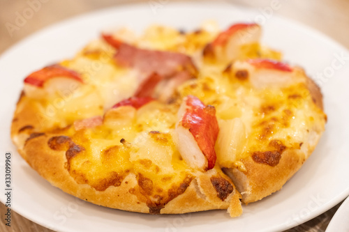 Pizza Hawaiian with pineapple and ham