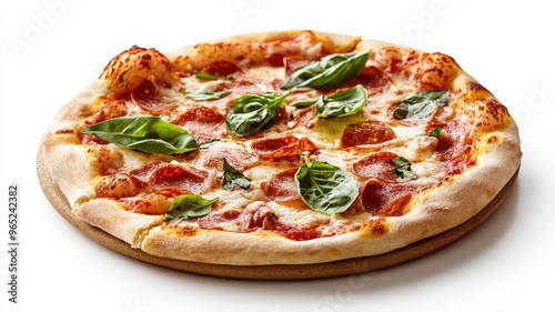 Pizza isolated on a clean white background, highlighting vibrant toppings.