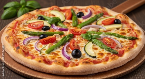 Pizza with Bell Peppers, Olives, Tomatoes, Veggie