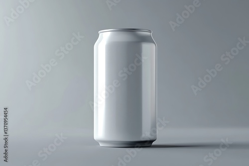 Plain Aluminum Can Mockup Render on Pale Gray Seamless Background, Minimalist Design