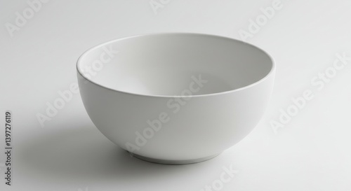 Plain white ceramic bowl centered on gray background for minimalistic kitchen table setting picture