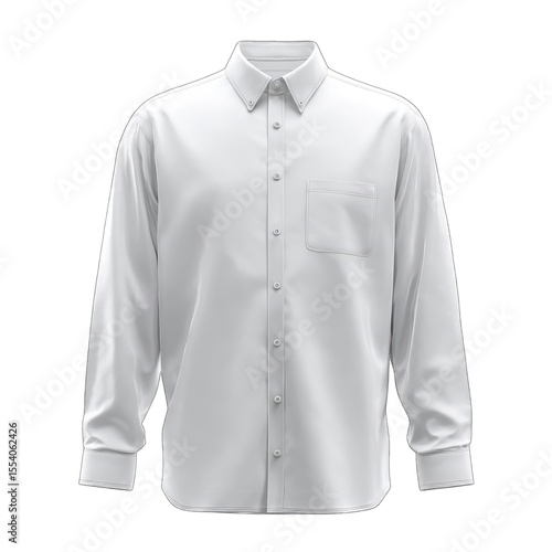 Plain white long-sleeved button-down shirt, single chest pocket, collared