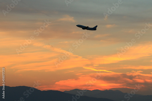 plane in the sunset