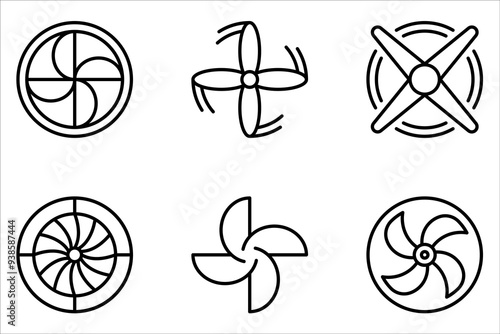 Plane turbine icon set. Airplane equipment on white background