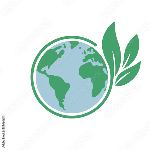 Planet earth icon with leaf protecting it. Save the world, eco-friendly symbol. Protect the environment.
