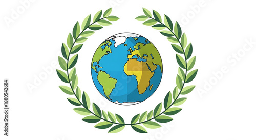 Planet earth surrounded by a green laurel wreath isolated on transparent background