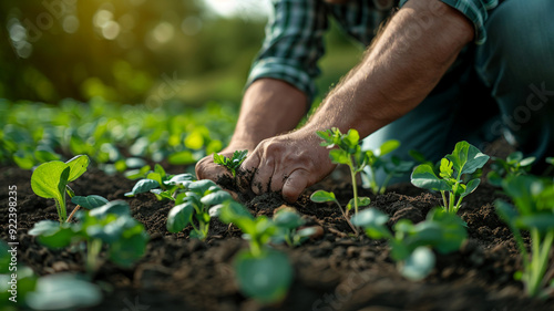 Planting plants in the ground, close-up highlighting fresh, fertile soil