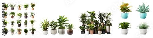 Plastic pots for indoor and outdoor plant isolated on transparent background, Set of