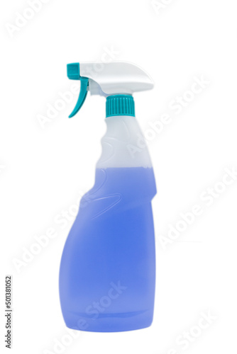 Plastic spray detergent bottle isolated on white background.
