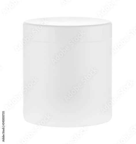 Plastic white round jar isolated on white background