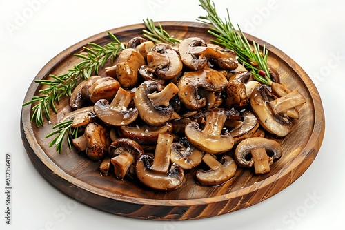 Plate of tasty Mushroom Matar with on white background.