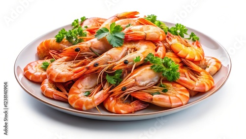 Plate with shrimp isolated on white background