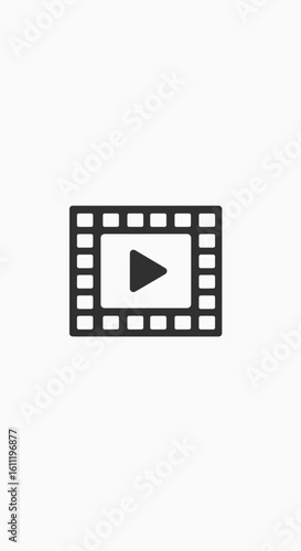 Play Icon on Filmstrip, Simple, Black and White, Flat Style