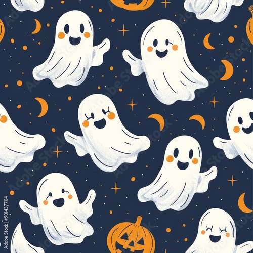 Playful Cartoon Ghost Pattern for Halloween