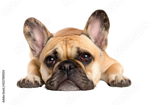 Playful French Bulldog dog PNG transparent isolated image highlighting its distinctive features and lively character.