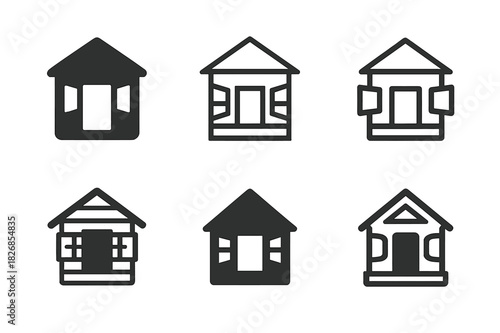 Playhouse Logo Variations. Outdoor playhouse. Icon set. Set Logo of outdoor playhouse: cabin with open windows. harmonious logo variations of the