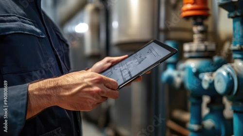 Plumber Conducting Plumbing System Diagnosis Through Smart Technology and Tablet