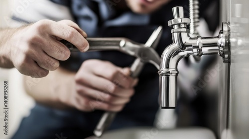 Plumber repairing a clogged drain in a bathroom. Featuring problem-solving and skill