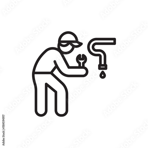 Plumber repairing pipe icon Simple thin outline