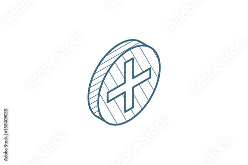 Plus Sign, positive isometric icon. 3d line art technical drawing. Editable stroke vector