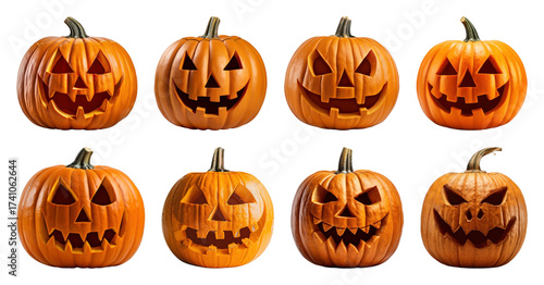 PNG Carved pumpkins with spooky faces, element set on transparent background