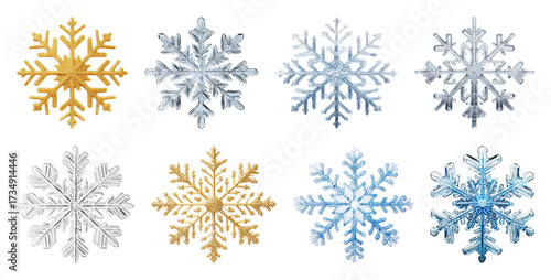 PNG Colorful decorative snowflake collection, element set on transparent background