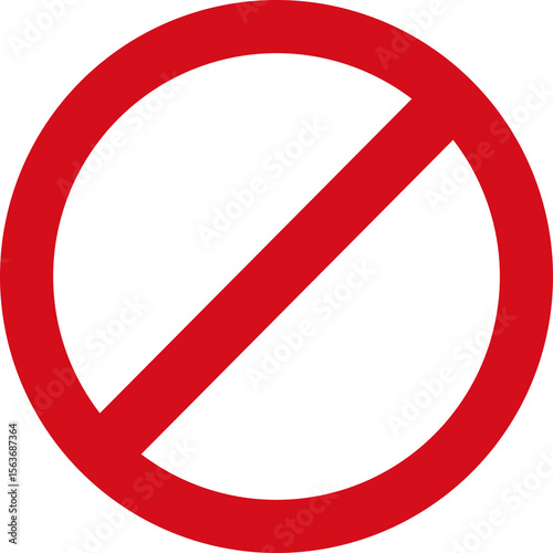 PNG digital illustration of a stop or prohibition sign, featuring a red circle with a diagonal line running from top right to bottom left. used for warning, no entry, restricted, or prohibited actions