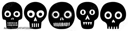 PNG Five stylized black skulls aligned, element set on transparent background