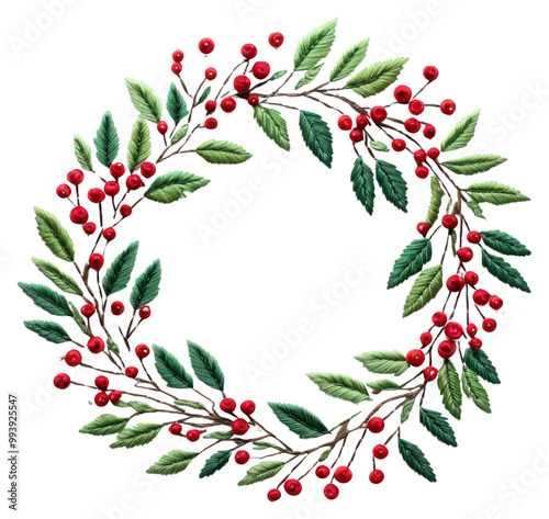 PNG Holly wreath in embroidery style pattern celebration creativity.