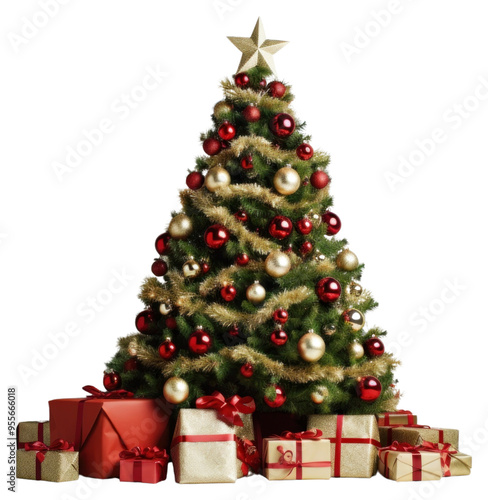 PNG Hristmas tree with gifts and holly around it christmas plant anticipation.