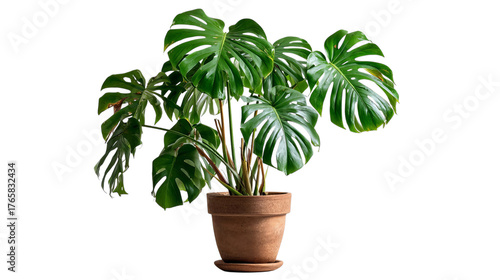 PNG of A lush green monstera plant in a classic terracotta pot, bringing a vibrant touch of nature indoors.