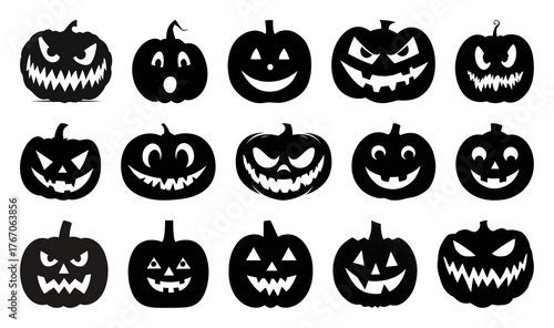 PNG Spooky pumpkin face silhouettes collection, element set on transparent background