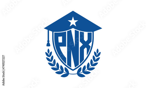 PNX three letter iconic academic logo design vector template. monogram, abstract, school, college, university, graduation cap symbol logo, shield, model, institute, educational, coaching canter, tech