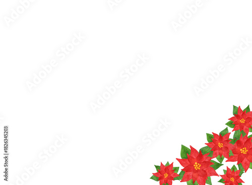 Poinsettia Frame. Christmas Winter red flower painted by watercolor. Frame for greeting card, poster, flyer and banner.