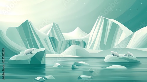 Polar Bears on Ice Floes in Arctic Landscape Climate Change Illustration