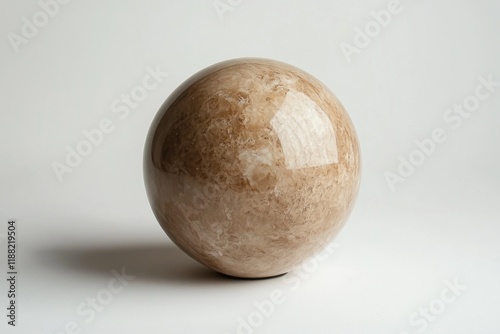 Polished beige stone sphere on a neutral background
