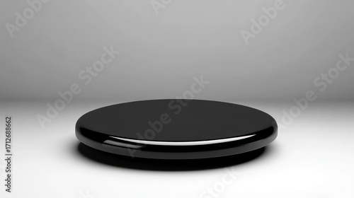 Polished black circular podium on a light gray background.