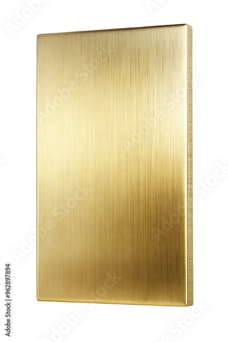 Polished vertical gold metal plate featuring a brushed texture and elegant finish. Ideal for modern design, branding, and luxury decoration elements. Isolated on transparent background, png.