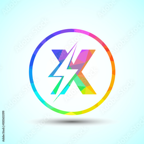 Polygonal Initial letter X logo design with lighting thunder bolt, Electric bolt logo template